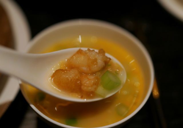 璞尚酒店的中餐厅,装修融入了红砖、燕尾、花砖等闽南元素,还运用了对称的设计原则。这款酷似樱桃的鹅肝,吃起来口感绵柔。果木烤黑黄金片皮鸭,金黄酥脆的鸭皮,还没吃就已经闻到香味。底下的鹅肝绵密顺口,还有松软的面包片搭配,顶上的黑鱼籽起到了画龙点睛的作用。爆炸龙虾粥是这里的招牌主食,龙虾熬出来的汤底特别鲜美,加入炒米的粥咬起来在嘴里咔咔作响。