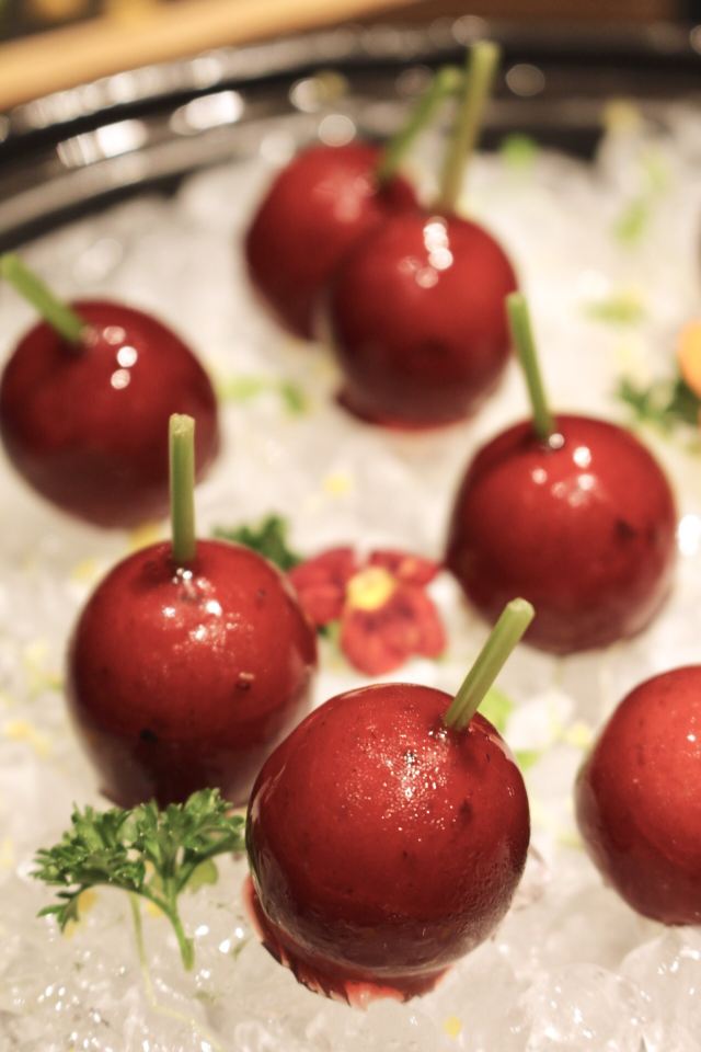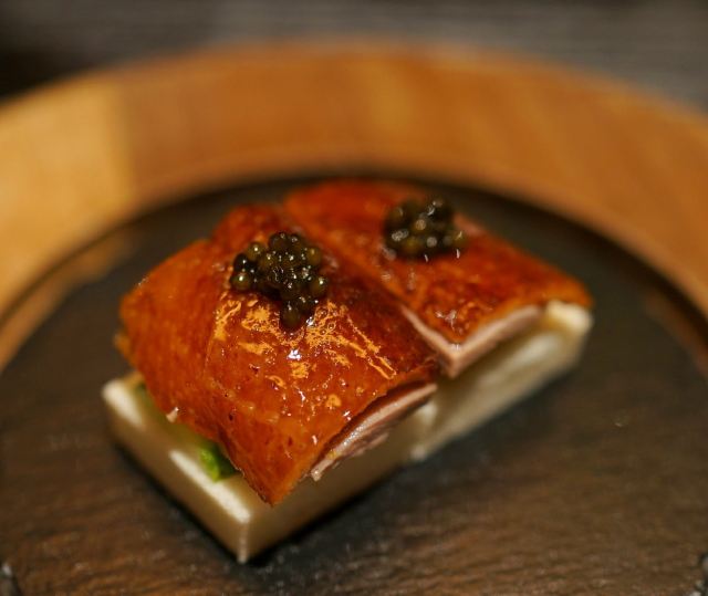 不曾想过,在厦门这座繁华的都市里,闹中取静,还有一片这样禅意萦绕的桃源。小众而奢华的璞尚酒店 ,低调而不张扬的风格,如若不是亲临其境,恐怕无法想象这避世之所的奢华与惬意。 拥有65万闽南红砖打造的“璞尚酒店·XIA中餐厅”,更是将艺术感的设计发挥到了极致。私密内敛又不乏惊喜的用餐环境,融入闽粤川菜肴精髓,给人带来无限美好的用餐体验。 红酒樱桃鹅肝:一个个“樱桃”娇艳欲滴,晶莹剔透的可爱模样足够以假乱真。轻轻咬开后绵密的鹅肝入口即化,香气萦绕舌尖久久不退。 缤纷蔬果沙拉:夏日里一道高颜值沙拉,红心火龙果是艳丽的鸡冠花,香甜芒果是耀眼骄阳,醇厚牛油果是青青草地,白色火龙果是阵雨后的微风。夏日气息都汇集于这盘清爽的沙拉中。 冰烧三层肉:能做好冰烧三层肉的厨师,一定是深谙粤式料理精髓。诱人的金黄脆皮,卖相可爱,脂肪比例恰到好处。焦脆的外皮与Q弹的肥瘦肉共同咬下去,脂肪的爆浆感令人分外满足,回味甘香。 果木烤黑黄金片皮鸭:诱人的黄金色泽光是看着便令人食指大动,酥香松脆的鸭皮,绵密细腻的鹅肝,松软柔韧的面包片,金贵的黑鱼籽,成就了这层次丰富的美味。 爆炸龙虾粥:由主厨祁伟辉师傅亲自现场烧煮,仪式感满分。龙虾粥出锅前加入炸制过的香米,入口后炸米的香脆感与粥的温润感相得益彰,鲜甜的龙虾肉更是让人喜上心头。 璞尚酒店· XIA中餐厅 坐标:厦门市槟城道277号 人均:500