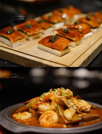 七尚酒店·厦中餐厅🥢,位于📍槟城道277号七尚酒店内。餐厅单一“厦”字,突出闽南文化,集粤、川、闽等菜系之重长,做自成一派的创意中式菜肴。✨ 淮阳宝塔肉🥩,一整层连绵不断的五花肉堆成如山宝塔,肉肉鲜美,肥而不腻;麻婆波士顿龙虾🦐,当麻婆豆腐🌶遇上大龙虾,虾肉紧致鲜嫩,更多添了一份川味;金虫草酸汤鳕鱼🐟,鳕鱼肉细嫩鲜香,酸汤口味也啥到好处;九层塔鹅肝牛柳粒🐂,大颗粒牛柳,选用高级澳洲牛肉🥩,肉质纹理细腻,雪花般的油花分布均匀,口感一级棒。 环境也是没得说💯,红砖、灯光、餐盘等🔍,每处细节都透出独具匠心的设计理念✨,蕴涵闽南独特的文化底蕴,反映出餐厅之“厦”。