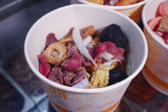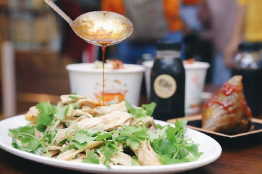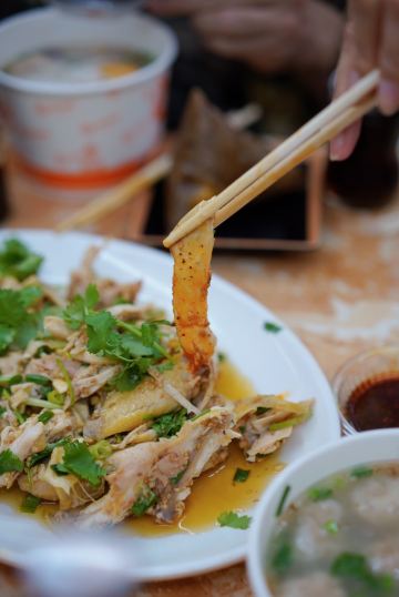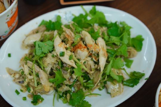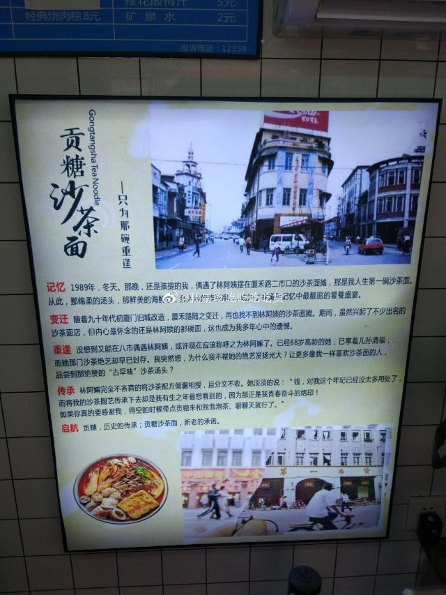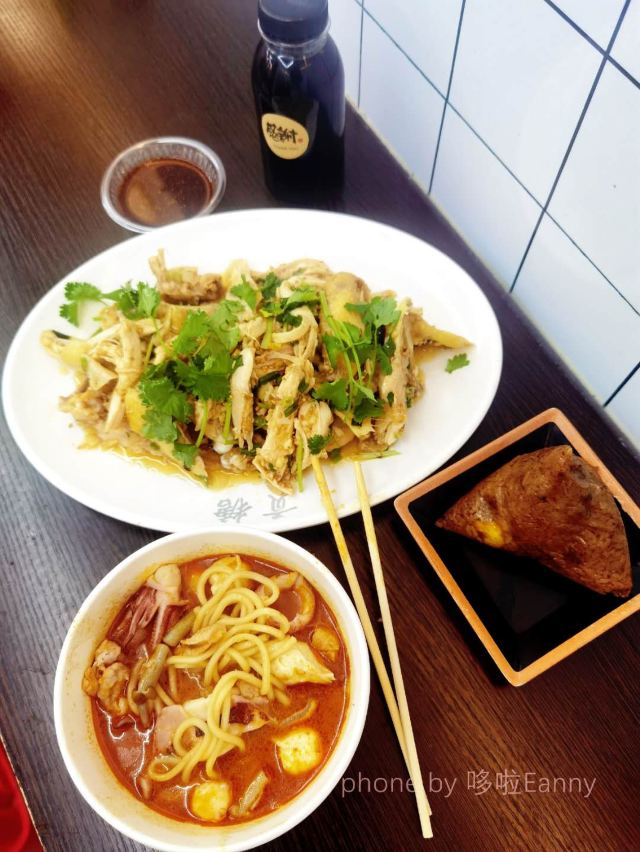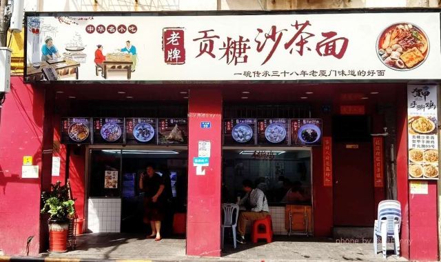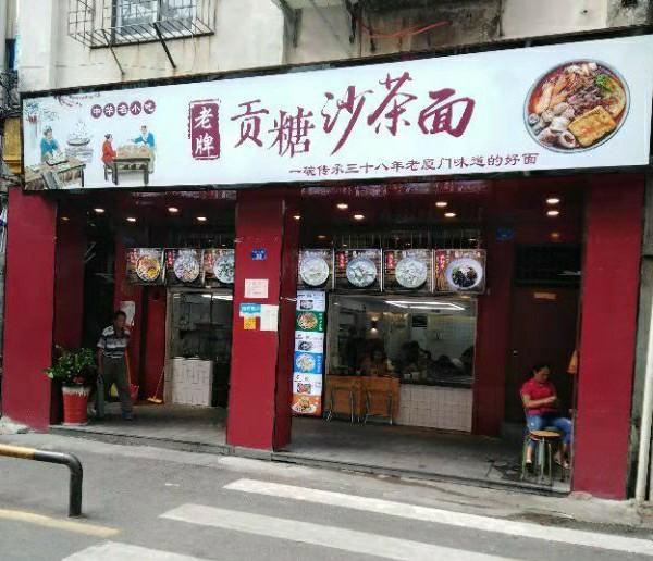 潼甄喵厦门中山路多个菜市场,每条街道都具有厦门当地人文情怀。其中八市是厦门人常去的海鲜菜市场,八市周边的传统小吃还吸引了一大批来厦旅游的人前往。位于八市路口的这家贡糖沙茶面和手撕鸡的经典的组合,每每经过皆座无虚席,深受游客的喜爱。 ♀️【起源】沙茶面是来厦门旅游必点的传统美食。“沙茶”原本应读作“沙嗲”,因为“嗲”字音与厦门闽南话的“茶”字音相同,所以到了喜好饮茶的闽南人嘴里,便顺口叫做“沙茶”。而贡唐沙茶面源自1889年冬日,老板对林阿姨的沙茶面团面的相遇相识;随着九十年代厦门旧城的改造再也找不到二市里那林阿姨的老沙茶面汤,某日在八市的偶然重逢碰撞出的“古早味”传承,同时这也是充满温暖记忆传承。 ♀️【沙茶面水面6,配料另收费】一进店在店员引领下先选主食,标配水面或米粉。再根据自己的喜好选配料,冰柜中放着20多种食材,新鲜的海鲜类、各式动物内脏、丸子类、肉类、酥脆的炸物,总有一款是你的爱。店员先将主食和选好的食材在大骨汤中烫熟,再淋上沙茶汤底或清汤,一碗热气腾腾面就完成了。我选择了沙茶汤底,汤头浓稠鲜香,惊艳了味蕾,豆腐、鸭血吸收饱满的汤汁,吃起来别提多带劲了~当然海鲜是厦门沙茶面的特色,可别忘记点啦。给沙茶汤添了许鲜甜的鲜活蹦跳大虾、爽脆弹牙的东山小管、新鲜甘甜的猪肝、黑不溜秋的墨鱼丸、软糯可口的米血等等。重点是贡糖的沙虫独特新奇。并不是因为他特别,而是茶面仅有这么一家可选沙虫。沙虫是生长在海滩的海鲜品种,可清蒸、煲汤、酥炸等等各式菜色,但因外形酷似肠子,外地人见了不敢食用,本地人看了直流口水~沙茶面沙虫新吃法,必须来一份,一口一只秒入魂。 ♀️【手撕鸡50/半只】贡糖沙茶面除了清汤/沙茶面以及传统小吃烧肉粽还有贺甲手撕鸡喔。“贺甲”是使用祖传配方,源自闽南语谐音“好吃”,一字闽南语诠释了是三代传承秘方。贡糖的手撕鸡是现点现撕的手撕鸡,选用优质三黄鸡。点了半只鸡,看着店员现场熟练的切开手撕成条妆,加入小店秘制调料搅拌均匀,装盘上桌,一气呵成不过转眼间。鲜嫩的鸡肉带着芝麻、蒜蓉的混合香气,浓郁鲜香、油脂适中、肉质细腻,甘甜清淡的口味适合闽南人。不过我喜爱辣食,淋上店里秘制️辣椒油,这才够味