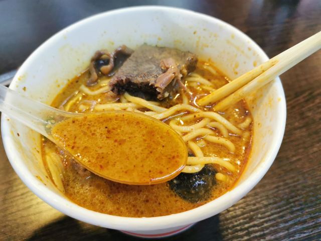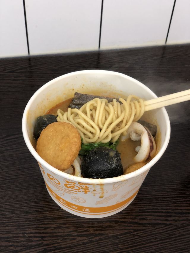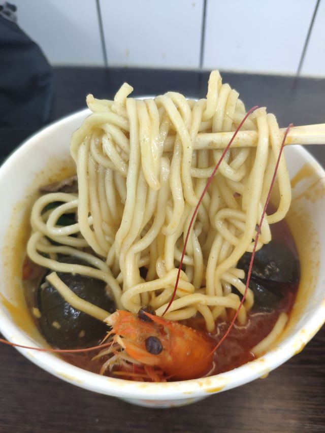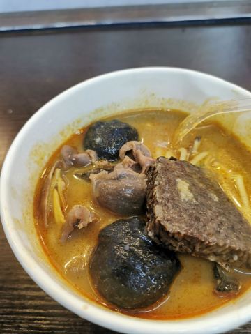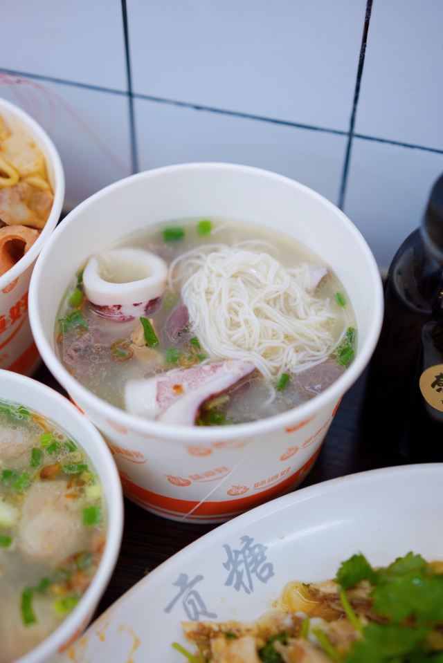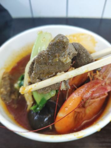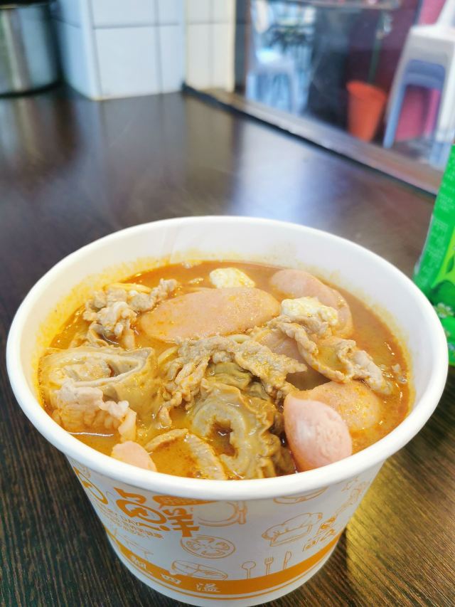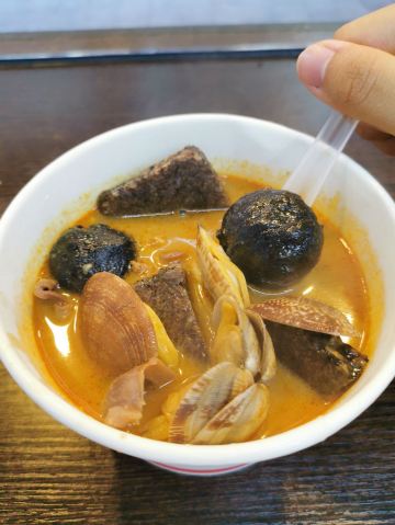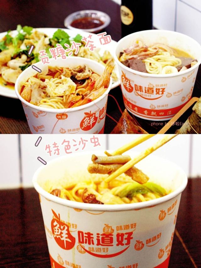 栗梓Lychee唔~是什么样的运气让我发现了这家汤头更正的沙茶面~从熙熙攘攘的八市逛出来 想要觅食的我们转头就看见了这家沙茶面,还有着38年的老牌历史,想着很久都没有都没有吃沙茶面了,就进去点上一碗~ 食材大多都在柜子里一目了然~海鲜 肉类 内脏 丸子…都有~阿姨人很好,正值饭点,点单取材捞面涮菜不慌不忙。不一会儿,热腾腾的沙茶面和着香气就端到我们面前~店内空调很足,不会那么烫口哈~ 汤头香浓,沙茶很正,是我喜欢的沙茶汤~碱面爽弹,我加了咖喱鱼饼、小管、墨斗丸和黑米血~不得不说这咖喱鱼饼太好吃啦,一份三个感觉意犹未尽~小管也切的很大圈,新鲜Q弹!浓浓的古早味把我包围,吃的不止是碗里的汤和面,更是一种情怀啊~ 沙茶面一份6元➕料 丰俭由人~ 回味ing~