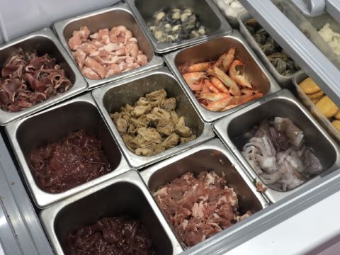吃吃吃想吃就吃在开元路第八市场也叫营平市场路口边,吉治百货侧面对面,招牌很大,远远就看得见,附近公交车站一轮渡公交场站,走过来七、八分钟,交通便利。 店面不大,环境倒是布置很好,简洁干净,食材放在冰柜里,配料价格明码标价贴在前面墙壁上,让顾客一目了然,想点什么很方便的,有二十多种可选的。还有小吃,闽南醋肉、海鲜卷、烧肉棕、扁食汤、清汤面、海蛎面线等。 对于本地人来说,沙茶面小时候父母亲不让吃多,怕这怕那,害得我一到外面逛就会想吃它,最近一直想吃不知道什么回事,上瘾了吗,呵呵 虾好大只,没黑头就是新鲜,肉质紧致Q弹。东山小管品质就是好,纯白颜色,Q脆好吃。猪肝好久没吃了,粉肝很嫩。墨鱼丸,从没吃过,好好吃。汤头很香,觉得地道,一碗传承三十八年老厦门味道的好面,