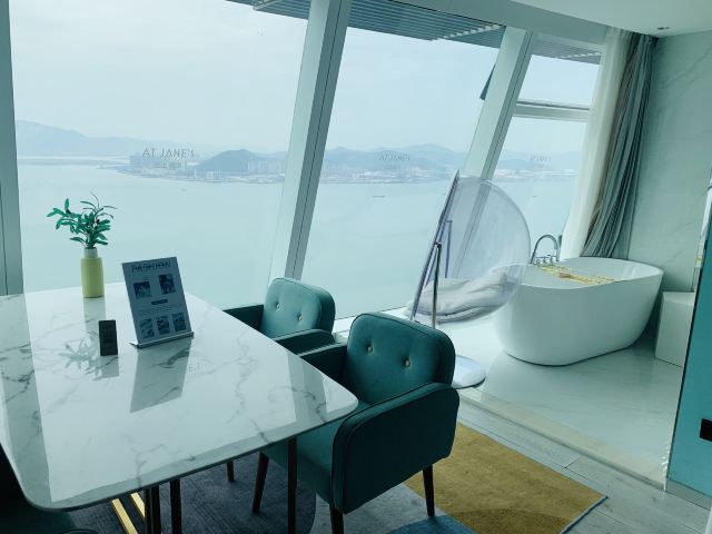 一直在路上的猫63楼高空下午茶|浴缸|换装|拍摄 👍厦门旅游,热热的夏天还要戴着口罩😷,不如来这喝下午茶吧。吹着空调看着无敌海景享受美食,还可以换装拍美美的照片发朋友圈。 🏠环境:在厦门地标建筑双子塔上,63层拥有超棒的视野,里面有大厅有包间,都是落地窗可以看到无敌海景,夕阳🌇真的特美,波光粼粼的海面上偶尔一两搜船🚢驶过,还有泛红的晚霞,每一个包间会略有不同,带浴缸的拍照更美。 💰分为大厅和包厢,有团购比较划算,大厅288元/2人;包间388元/人;都包含了下午茶和点心和水果🥭。推荐包间,有私密空间还有两套衣服+:.首饰可以换装拍摄。 👉#下午茶# 英伦风,用小推车满满的仪式感,茶可以续,自己选择加奶加糖。蛋糕🍰和小点心都好吃,水果新鲜。 👉#服饰+首饰#有正装,礼服,睡衣等等,上百套衣服可选,配饰也很多,还有包包等。两套建议一套礼服+睡衣,睡衣可以拍出慵懒的酒店风。 📍地址:演武西路188号世茂海峡大厦A塔6302号。一定要提前预约,特别是包间。