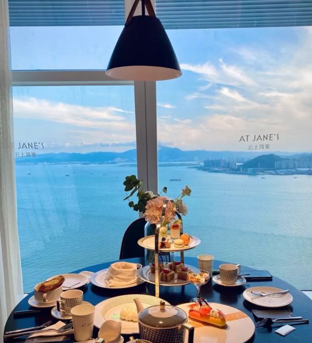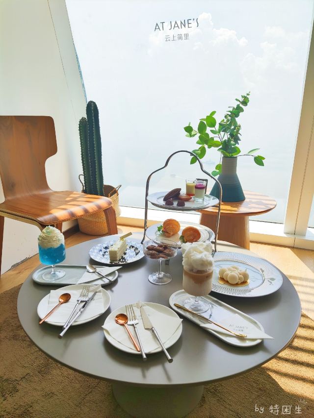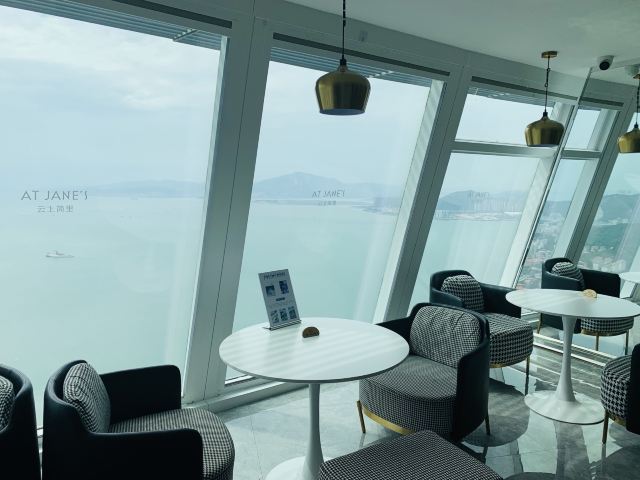 AT JANE'S【环境】 环境真的是超级无敌点赞啊[强][强][强][强] 63层高的双子塔座,俯瞰海景。特别的惬意舒服[开心] 【口味】 |云上简里双人下午茶^这个性价比高很划算,三个人吃都没问题。 |云朵咖啡^棉花糖吃起来有一点点棉和沙冰感,这个口味是冰冻的,整体也还不错。 |桂花拿铁^这个咖啡香味沁鼻,入口香滑。 |英式司康^这个感觉一般,口感稍微偏润软,配了两种蘸酱,草莓🍓跟炼乳两种酱。 【服务】 哇服务真的是五星级服务啊,很有仪式感,而且是英式服务。特别的细心周到,用餐结束会询问我们对食物的评价和建议。真的不愧是厦门网红必打卡。 对了,特别提醒一下大家,里面有配包间的,私密性好而且景观特别的美。建议大家前往之前最好预约一下,避免高峰期没有位哦!