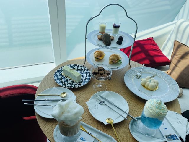 熹公主【环境】 环境真的是超级无敌点赞啊[强][强][强][强] 63层高的双子塔座,俯瞰海景。特别的惬意舒服[开心] 【口味】 |云上简里双人下午茶^这个性价比高很划算,三个人吃都没问题。 |云朵咖啡^棉花糖吃起来有一点点棉和沙冰感,这个口味是冰冻的,整体也还不错。 |桂花拿铁^这个咖啡香味沁鼻,入口香滑。 |英式司康^这个感觉一般,口感稍微偏润软,配了两种蘸酱,草莓🍓跟炼乳两种酱。 【服务】 哇服务真的是五星级服务啊,很有仪式感,而且是英式服务。特别的细心周到,用餐结束会询问我们对食物的评价和建议。真的不愧是厦门网红必打卡。 对了,特别提醒一下大家,里面有配包间的,私密性好而且景观特别的美。建议大家前往之前最好预约一下,避免高峰期没有位哦!
