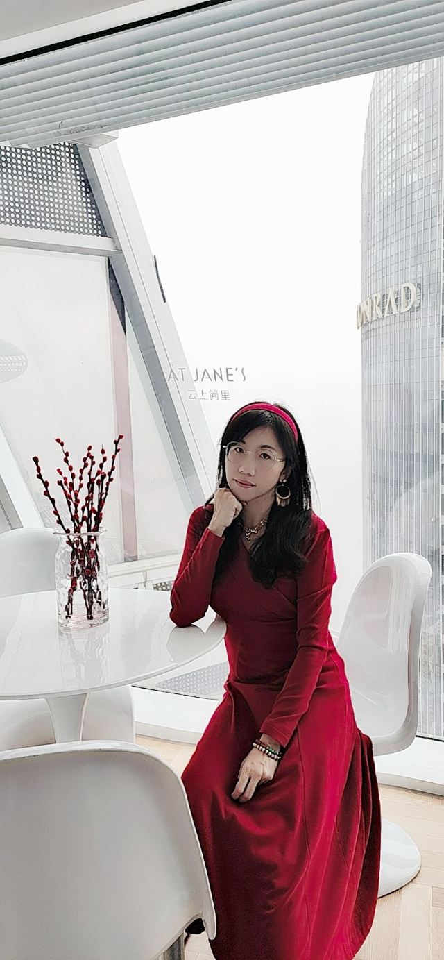 鸭鸭爱生活跟闺蜜约的下午茶,女生约饭看什么,就是环境啊!这家云上简里可以说环境是无可挑剔了! 环境: 位于世茂双子塔A塔63楼,原本是民宿,现在改为这种形式也是挺好的!原来的房间变成专属下午茶包厢,有私密的空间,很舒服~每个包厢的格局略有不同,但都能看到外面绝美的风景! 服务: 一定要记得提前预约,如果要下午茶包间的话。包间含两套服饰任选,服务员小姐姐会贴心帮你搭配饰品哦~包厢时限是2个小时,如果下面没有客人排队,也不会硬催 ❤吃什么不重要,看到美丽的服装和环境就拍照停不下来系列~春节要到了,挑了件红色礼服,很高挑很出片。可惜那天天气不是很好,背景有点朦胧 甜品台东西还可以,比较喜欢他们家英式红茶,感觉也挺适合商务会谈的!