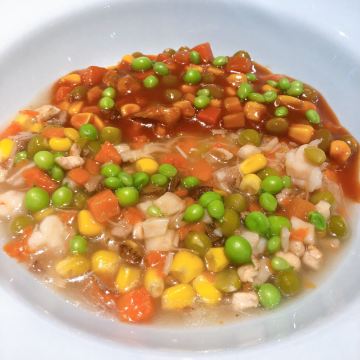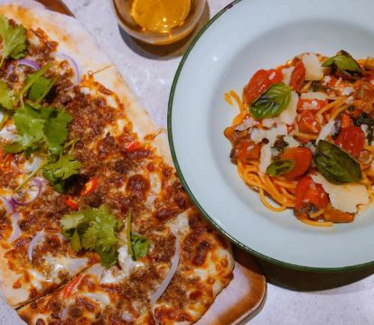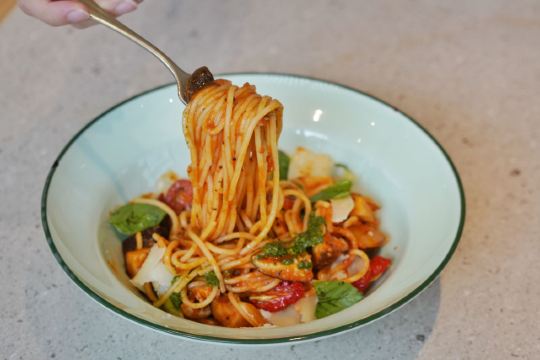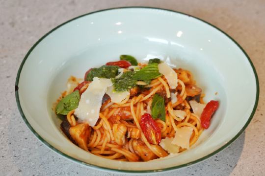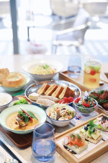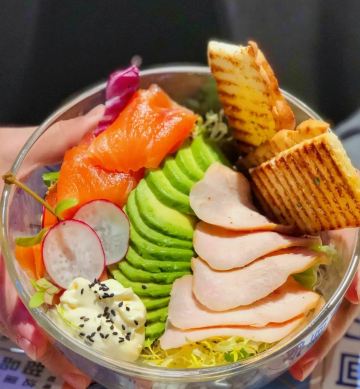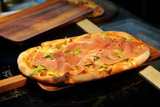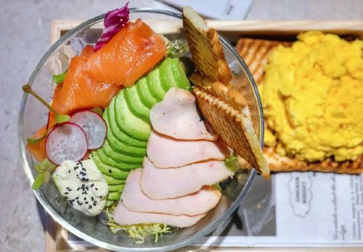 帕尔玛火腿披萨,咖喱海鲜饭,烟熏三文鱼配炒嫩蛋,福建炒饭,黎麦鲜虾沙拉,黑椒牛柳意面