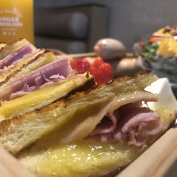 怪力_乱神⭐️每次来万象城的时候,都会被外面的这座玻璃房吸引住。巨大的落地玻璃窗,可以透过看到里面的装修,也可以看到外面的阳伞,有种在上海新天地的既视感。 ⭐️糖立方的装修特别棒,不仅外观好看,走进去一看会发现更不一般。透亮的玻璃让整个店铺都很有空间感,向外面延伸,特别开阔。 ⭐️他们家主要是做西餐的,brunch和下午茶特别有名,加上无敌的环境,在这里用餐心情都会变得超开心。 👉🏻火腿芝士三明治是他们店里我最喜欢的一款,用料特别足,尤其是咸咸的芝士,加在三明治里,咬一口就是大满足! 👉🏻白酒蛤蜊意面里放了很多的蛤蜊,加入白酒进去煮,味道特别香。意大利面很劲道Q弹,一定要趁热吃更有味道。 👉🏻糖立方很贴心的一点,就是为吃不惯西餐的顾客准备了中餐,可以满足更多人的口味。咖喱海鲜老少咸宜,特别好下饭,难怪电单率那么高。 ⭐️他们家涵盖了早午餐、午茶和正餐,晚上的时候还有调酒,再加上这么棒的环境,感觉在这里待一天都可以。