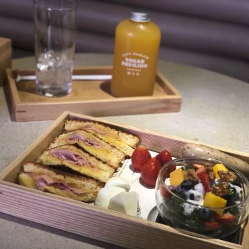 Sugar Pavilion喜欢这样通透的环境,所以选择这里约见老朋友,环境不错,不过室内空调实在太冷了,匆匆吃完不敢久留啊! 【口味】装盘精致容器好看,帕尔玛火腿披萨🍕口味不错,白酒蛤蜊面有点咸,两份饮料味道挺好的,整体来说口味不错。 【服务】小妹点菜、收盘都及时跟进,不错的。