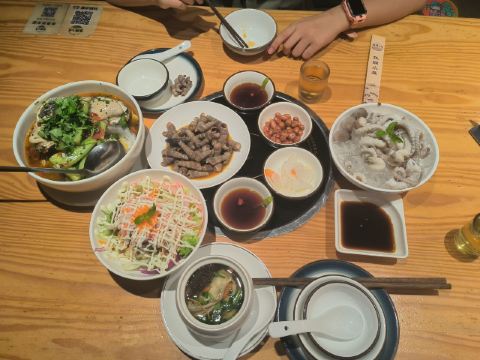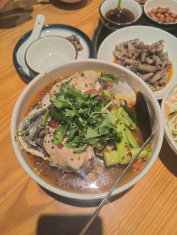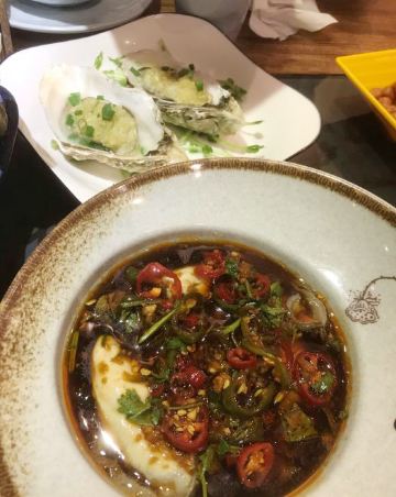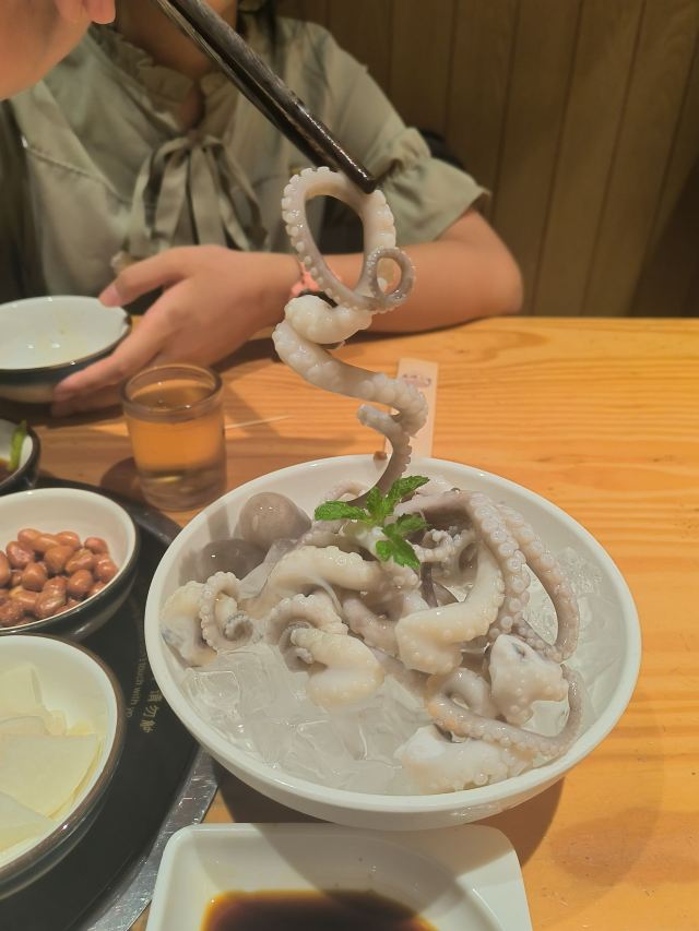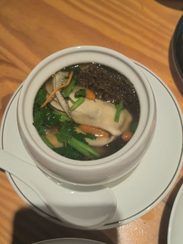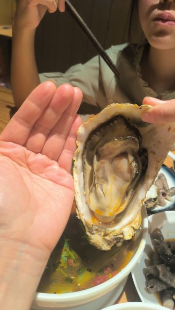 我个人喜欢生蚝炖鸡,一个人一盅刚刚好。海鲜都很新鲜,冰镇八爪鱼的口感很好,鲜甜Q弹。生蚝的个头挺大的,快有我的手掌🖐大了。碳烤的生蚝我没有点,我点的水煮生蚝,重麻重辣的。实际上口感也还好,没有麻辣到需要挑战一下的款式。我从老干妈辣子鸡那块地来的,这个对于我来说,没有难度了。服务很好,大家统一着装,笑脸相迎。体验感很好!