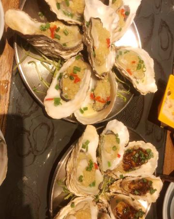 生腌牡蠣,串烧孜然牡蛎串,炸牡蛎,刺身生蚝,干煎黑豆腐,蒜蓉烤大蚝,牡蠣饭,高压锅大蚝,美味蟹柳沙拉,墨鱼紫菜拼盘,烤生蚝,下酒的台湾香肠,太平洋刺身