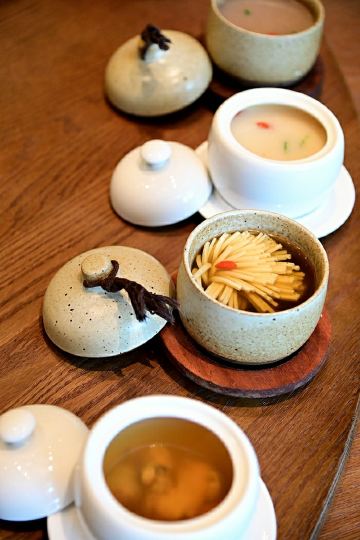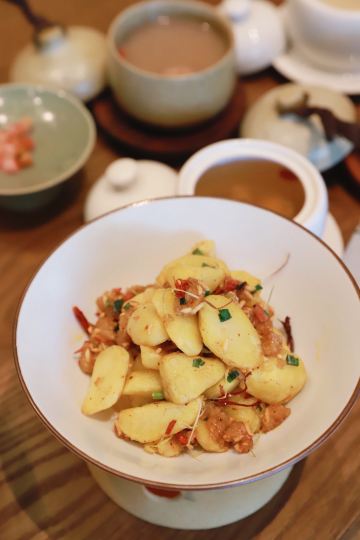 🔸前阵子和朋友聚餐,发现了一家宝藏湘菜馆,位于万象城的五楼。这家叫做传位堂的湘菜馆,是一家融合碰撞餐厅,主打还是湘菜。 🔸店里的空间很大,陈设和布局也都有所讲究,在用餐的时候你会感觉非常舒服。 🔸据说来店里吃饭的食客,都会点大金湖剁椒鱼头这道菜。硕大的鱼头被满满的剁椒覆盖着,露出雪白鲜嫩的鱼肉,特别诱人。吃完鱼肉,还可以把菠菜面倒入汤汁中拌开。 🔸辣椒爆炒关东海参的味道特别香,海参的Q弹带着满满的胶质,在嘴里的口感非常好。 🔸羊肚菌煨雪花牛肉,两种上等食材之间的碰撞,让这道菜注定成为大家心中的绝佳CP。羊肚菌独有的鲜味,给汤汁加分不少,雪花牛肉伴着油脂,口感特别嫩。 🔸如果喜欢吃米饭,一定要点一道铜锅小肥肠,真的太下饭了。铜锅里的肥肠,在小火的加热下,任由汤汁慢慢渗入其中,越久越入味。 🔸我对他们家的石磨有机黑豆腐印象很深刻,嫩滑的口感像极了水蒸蛋,在口中顺滑难挡。 🔸传位堂的炖罐也很不错,个人比较喜欢野藕汤的味道,莲藕被炖得软烂,味道早就融合到汤里,加上肉汁特有的香味,喝起来浓郁香醇。 🔸一定要试试传位面包油条和绿豆浆。他们家的绿豆浆,其实并不是用绿豆磨成的,而是普通的豆浆加上菠菜汁,绿油油的颜色看起来特别舒服,喝起来也顺滑好喝。 🔸尝过一遍他们家的菜品,可以说每一道都各有千秋,随便点都不踩雷。