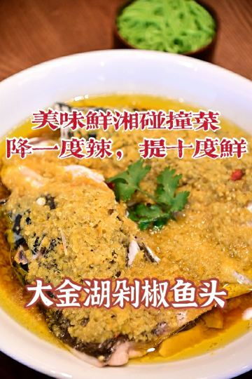 厦门也能吃到精致鲜湘碰撞菜,降一度辣,提十度鲜! 🌟在很多人的印象中,湘菜辣的怀疑人生,不敢吃辣的人退避三舍,口味以清淡为主的厦门人更是闻之色变。然而厦门开了一家传位堂·鲜湘碰撞菜,理念是“降一度辣,提十度鲜”,辣的恰到好处,鲜的一口入魂,开业以来深受厦门食客喜爱,听说最近推出了新菜,赶快约上朋友们去品尝! 💎餐厅环境:店外绿植环绕,闹中取静,门面端庄大方,门口的迎宾台是有几百年历史的原木打造,底蕴深厚。店内环境素雅精致,细节考究,布局错落有致,移步换景,格调不凡。满墙古朴的素色陶器,很有意境,包厢宽敞明亮,舒适自在。透明厨房面积很大,整洁清爽,大厨们有条不紊的烹制着美味佳肴,吃的放心。 👧服务:服务周到得体,彬彬有礼,宾至如归。 💝推荐菜品: 👉大金湖剁椒鱼头配手工菠菜面,这是店里的招牌菜之一,鱼头个头硕大,满盘金黄诱人,香气四溢,鱼头软组织丰富,娇嫩可人,剁椒的咸辣程度刚刚好,不会掩盖反而更突显鱼肉的鲜美滋味,一会就瓜分一空。汤汁有滋有味不可错过,加入手工菠菜面拌着吃,味道好极了! 👉湘味炒彩电龙虾,红彤彤的龙虾十分美丽,色泽清亮栩栩如生,龙虾肉紧实弹牙,还加入了饱满大颗的虾仁,炒的麻辣鲜香,口感味道俱佳,赞不绝口。 👉辣椒爆炒关东海参,以前吃海参往往觉得不够入味,这道菜把海参切条后加入辣椒爆炒,完美的解决了海参不易入味的问题,鲜辣美味,选用的辣椒辣度适中,香辣而不刺激,连辣椒都很好吃,配米饭绝佳。 👉浸辣椒爆炒鲜鲍片,将新鲜大颗的鲍鱼切成薄片,用特色的浸辣椒爆炒,鲍片娇嫩弹牙,鲜辣咸香,爱不释手。 👉铜锅小肥肠,肥肠的火候掌握的极好,不生不老,嫩而不难咬,香香辣辣,回味无穷。 👉羊肚菌煨雪花牛肉,整颗的羊肚菌,大块的雪花牛肉,下面还垫着豆腐,清香肉香豆香完美融合,令人惊艳,汤汁香浓醇厚,也不可错过! 👉薄荷酱拌鲜核桃仁,鲜核桃仁饱满完成,口感清脆,特有的果仁清香加上薄荷的清凉滋味,如沐春风。 👉传位面包油条,一端上来大家就惊呆了,这油条足足有手臂那么粗那么长,金灿灿的很诱人。服务员帮忙剪成大块,蘸着有机绿豆浆吃,油条蓬松香酥,绿豆浆清香甜美,真是太好吃啦! 🌈INFO 🏠店名:传位堂·鲜湘碰撞菜 📫地址:厦门万象城L5空中花园 🚗交通攻略:地铁1号线湖滨社区站