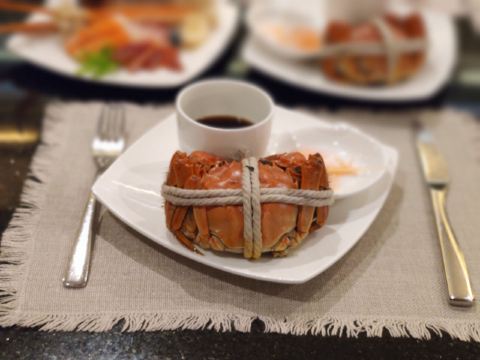 潼甄喵位于厦门湖里区悦华路101号悦华酒店是厦门市唯一花园式休闲度假商务会议酒店,也是厦门特区乃至福建省的第一家五星级酒店。在这开海的季节,悦华酒店推出了为期十天的饕餮海鲜美食节。 海鲜美食节海鲜是大厨精心挑选的本港地道海鲜佐以酱油水、白灼、清蒸以及盐焗等方式烹饪料理,还有刺身三文鱼、北极贝等多种刺身料理。生蚝更是有多种吃法:生吃、盐焗、蒜蓉。生吃的生蚝无需附以佐料,品尝它的原汁原味,入口的丝滑,生蚝那海洋独有的鲜香,令人回味无穷。 除了各式海鲜还有熟食以及多种汤品,其中的木瓜雪蛤三文鱼汤味道鲜甜,不见一丝腥味,好喝~ 喜欢甜品的我餐后必来甜品悦华酒店的甜品种类繁多,小布丁、慕斯蛋糕、冻芝士蛋糕还有巧克力喷泉⛲️每种口都来一小块,幸福感爆棚~ 大闸蟹,悦华酒店的大闸蟹真的不得不提及了!晶莹剔透的蟹膏、肥美的蟹肉,一入口那瞬间涌起的满足感可以说是对味蕾的一记绝杀~主厨说吃大闸蟹要挑公蟹,真大闸蟹的脚毛一定是金黄色的。而配大闸蟹的姜茶是为了祛寒,这姜茶还是当年主厨做给妻子喝的月子配方呢。好喝到我一杯接着一杯~宝藏主厨不仅做菜好吃还有一套“吃的舒心,不胖”的饮食攻略。 在这开海的季节,我们一起来吃海鲜吧~