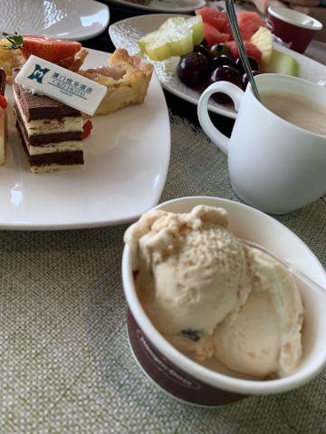 筼筜湖畔的我厦门悦华酒店,曾经是厦门NO1的五星级酒店,海悦山庄还没成立前,领导人过来厦门都是下榻于此的…现在已经重新装修环境更漂亮了! 很久没去吃悦华的自助餐了,绿庭自助餐厅就在正门进去的二楼,餐厅挺大的,座位不会显得拥挤。这次去吃的是午餐,热菜方面不多但是质量还不错👍,烤羊肉串有点膻味……海皇鱼胶汤还行,就是有点甜……哈根达斯不限量我吃了五球,味道都不错。生鱼片方面没有三文鱼,所以我只吃了一点象拔蚌刺身(感觉一般般),另外海鲜方面确实如很多人说的,质量很一般,虾还行,蟹就算了……水果不错种类齐全。 特地去吃没有必要,有活动时去尝尝是可以接受,午餐一个人138好像。