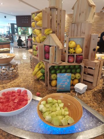 绿庭主题自助餐厅环境优雅,景色怡人,绿庭室内空间宽敞明亮。拥有室内及室外亲水长廊花园餐位逾250个,经典格纹的地毯、淡雅温馨的花束,处处彰显不凡品味。餐厅与皇家花园毗连,窗外风光旖旎,充满生机与活力。餐厅内美食琳琅满目,涵盖环球无国界中外美食,并不定期推出各式美食节。