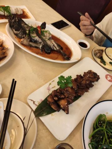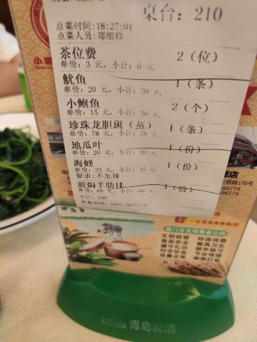 【口味】「小鲍鱼酱油水」鲍鱼个头非常大,肉质很紧,有嚼头,鲍鱼很新鲜,味道不错。酱油水是这个地区特有的做法,很好吃,味道浓郁「贵妃泡饭」感觉是海鲜汤泡饭,以虾为主,汤味道浓郁,米饭有两种,一种是普通米饭,一种是炒米,不同米饭不同口感「旺螺拼苦螺(白灼)」两种螺,旺螺个头更大,肉更结实,苦螺个头比较下,微苦,都很新鲜,白灼更能有原始的味道「金线鱼(煎)」我看是今日餐单的推荐,服务员说是刚到的,比较新鲜,味道确实不错,肉很能,煎的味道更脆,很好吃「烧汁酱爆海蛏」海蛏个头更大,这个做法味道很浓郁 【环境】[薄荷]环境: 海鲜餐厅,中规中矩 【服务】[服务铃]服务: 还可以,服务员相对较少,能点餐的服务员就一个,点餐需要排队