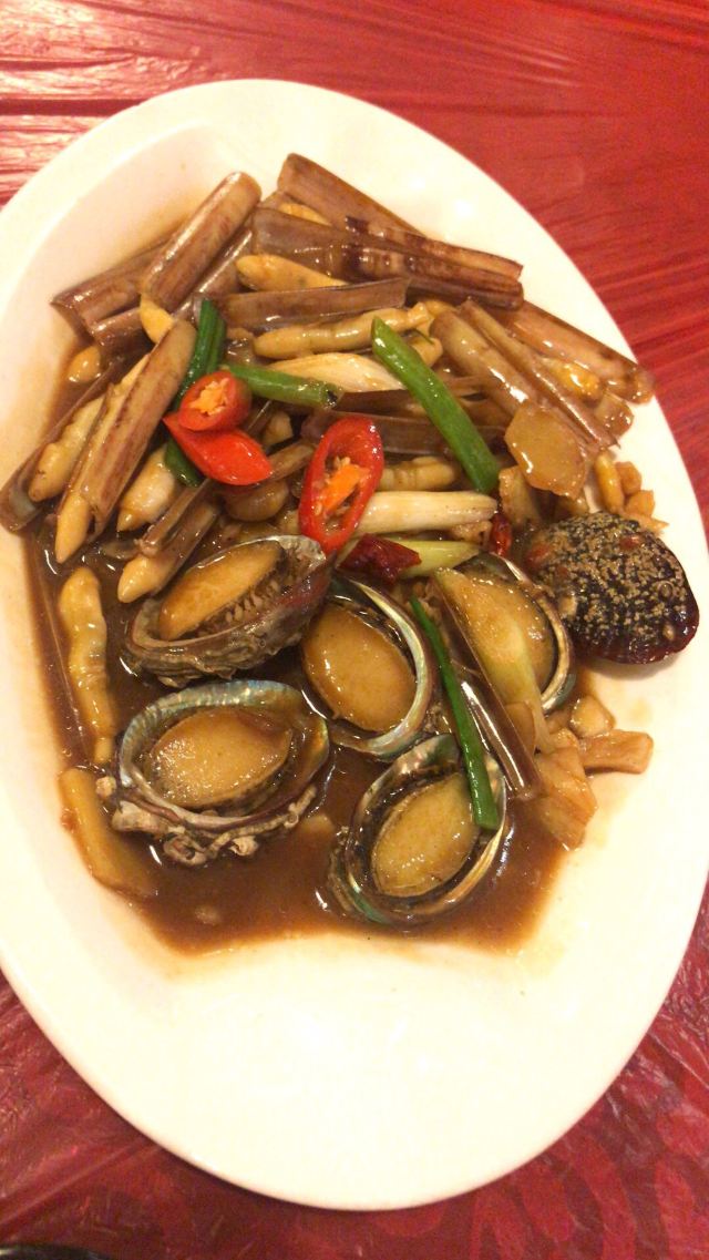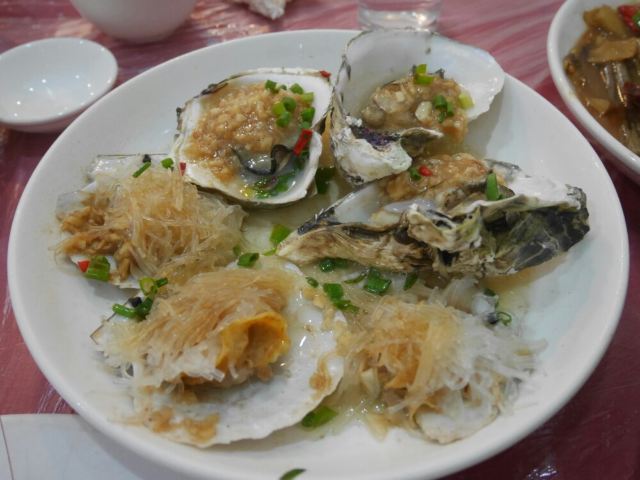 微微妞面对饥肠辘辘的一行人,大家马不停蹄的直奔大排档而去。到了店里,我们着实被惊着了!那个人多的貌似不要钱哦!还有被惊到得就是环境了,打算来此店的亲们,还是要先做好一下心理准备的,真的和大排档没什么两样。虽然不是摆在路边,是在店内,可是真的不是很干净。你要点什么菜,都是在大门口的墙上挑好,店员记录下来就下单了。因为时间有点久了,微妈我记得当时大概点了一条清蒸鲈鱼(杨哥和叶妹喜欢吃)还有一个蔬菜 一个炒海瓜子 还有一个店员推介的什么特色菜 总共花了靠300。味道真的是一般般,价格也不是很亲民。