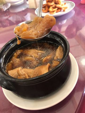 YoYo_8F5A0M6I《舌尖3》花了不少篇幅来介绍厦门的面线。一个个盛满鸭汤的陶瓷罐,上桌以后大家挨个先把面线夹入自己的碗中,再舀一勺汤。看着面线在棕褐色的汤里逐渐散开,心里就有一种暖暖的感觉。一人份的鸭汤里搭配一个腿、鸭胗和鸭血。这家店除了鸭汤面线,也还有面线糊、炒面线、猪脚面线。如果点了鸭汤面线,无法尝试猪脚面线,猪脚汤本身也非常值得一试。一口下去,糯烂的猪脚,丰富的胶原蛋白伴着鱿鱼干的香气,让人欲罢不能点了面线以外,还点了几样菜。比如仙景芋头、香酥排骨拼五香、干煎鸡和小青龙。看着成形的芋头,咬开后却是十分松软的口感。春卷也是必点的主食之一。薄饼皮,包裹着内容丰富的内馅儿,满满的闽南味道。