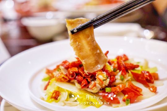 ShaMen BinGuan Restaurant🏡厦门宾馆5号楼,环境静谧,中餐厅的绮筵厅金碧辉煌,好似走进了一座宫殿中。 据说这里是仿故宫装修。80年代的装修,虽然过去了30多年,但依然金灿灿。这间🌟包厢每一处都造价不菲。尤其是桌、椅,还有着墙面上的字画,都是名人之作。墙面、顶部的雕龙刻凤,无不透露着贵气。 👉中间的菜品是凉菜和这里手工制作的点心。贵妃玉葡萄,麻香时蔬爽、千层黄瓜卷、武夷熏鹅、糟海钓鲈鱼……都想当精致、美味。 🌟迷你绿豆糕、橙味香芋球这两款餐前点心则是个人偏爱的,不会太甜腻,又有着古早与创新,让人记忆深刻。 1️⃣黑蒜炖土龙,不但器具精致,而且汤头清爽中带着土龙独有的香味,鲜美中带着滋补。 2️⃣火焰雪龙牛肉,在餐桌边现煎,煎完马上上桌,肉质细腻,肌纤维细嫰,入口即化的口感,让人念念不忘。 3️⃣沸腾象拔蚌,这种做法,在夏日里胃口大开,脆鲜中带着香辣,口感独特。 4️⃣原汁烤午鱼,剥去皮会发现鱼肉的鲜嫩中还带着汁液,皮脆肉嫩,鲜美的口感,带着淡淡的盐味,完美地演绎了这道菜的精髓。 5️⃣这里的主食有着多种选择,最爱的就是厦宾的鲜肉包,酒店的包子不但要造型美,多少个褶子都要算清楚,所以做出来的个个相同,重点是这个肉包吃过的人都说赞。现在对外开放,可以随时想吃就下单,重点是价格也非常实惠噢。 6️⃣这里的阿嬷五味薄饼也是一绝,包厢宴请会在餐桌旁边制作,现做现吃,口感不同。 7️⃣最后的甜品是五夫莲子,用的椰奶打底,口感软糯中带着奶的香甜气息,做为餐后甜品再适合不过了。 📍地址:厦门虎园路16号 💰人均:200+ 🌟服务:5星酒店的服务可圈可点