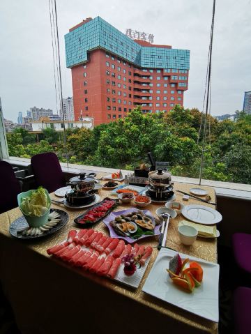 厦门宾馆中餐厅,是一家以闽菜、广东菜为主的餐厅。餐厅装修环境优雅,大厅宽敞明亮,桌椅排放中规中矩,内部的布置很有特色,服务也非常的周到,用餐非常的舒适温馨。餐厅的招牌菜就属佛跳墙了,它是选用20多种材料,有鲍鱼、鱼翅、甲鱼、人参等用文武火交替炖8个小时而成的,味道可是原汁原味的,非常的美味。有生鱼片,有时是小火锅。水果都很新鲜,小吧台可以煮些面、鱼丸,还有铁板烧。