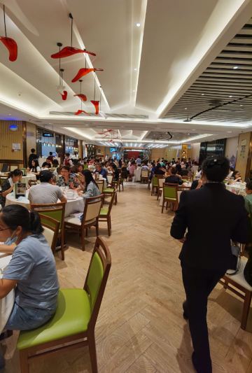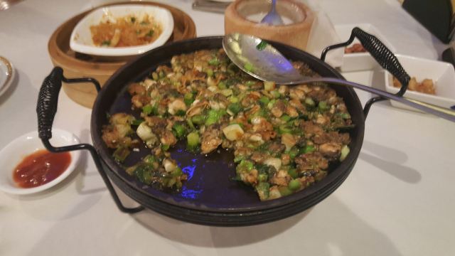 潮福城,可以喝早茶的歺厅!下午13奌到达此店,可是门口还是挤满了等待叫号的客人,我们也领了号,等了30分钟左右才排上队吃上饭!除了蟹黄烧卖好吃,其它味道都般,远々不如广州早茶好吃!