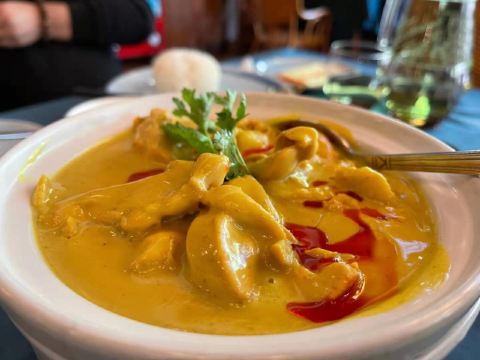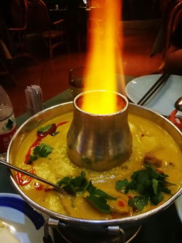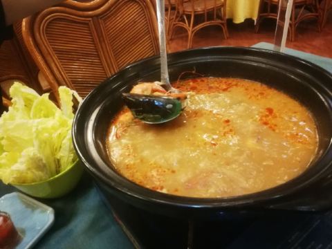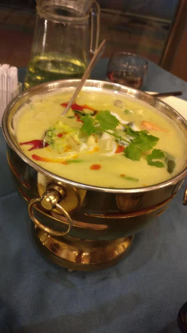 YoYo_5J9J3U7X市中心15年的老店,每次回明发宿舍都能看到,这一次终于和同事来拔草了。 不得不说这家餐厅的咖喱味道真的很正,东南亚的情怀,材料都很新鲜,整天感受下来还很满意的。 位置方面 这家在莲花南路附近,门口可以停车还有专人引导,蛮不错的。 菜品方面 ♛冬阴功火锅♛冬阴功的锅底味道太够味了,都可以直接喝汤,舒服的不行,太开胃了。里面的虾也很新鲜,吃起来很满足。 ♛马来咖喱鸡♛咖喱鸡是他们家明星菜品,还可以选择黄咖喱还是红咖喱,咖喱味道很好,浓稠,正宗。鸡肉也是超大块。 ♛金牌碳烤猪颈肉♛猪肉肉质Q弹,碳烤香气明显,撒料也合理,不会很咸,再搭配上他们特质的酱料,真的一发入魂,流连忘返 ♛沙茶肉串♛肉串选的是里脊肉,肉质很嫩,再搭配他们家正宗沙茶酱,真的比外边好吃很多。