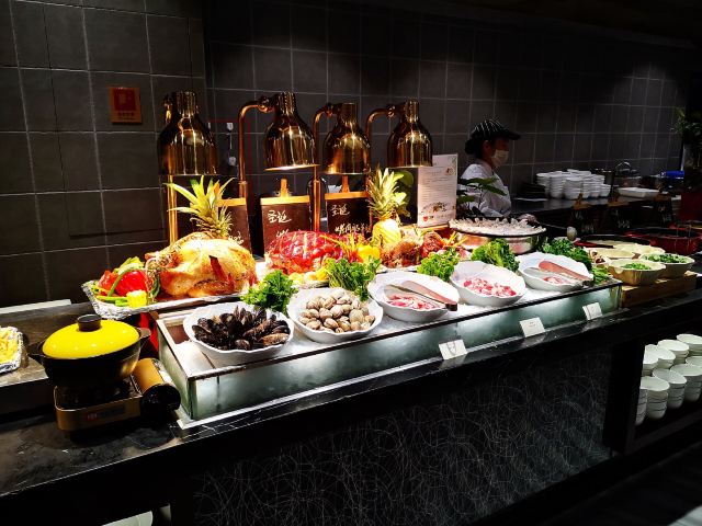 黑蒜烤生蚝,蛋奶布丁,海鲜刺身,海鲜蒸锅,烤牛肋骨,牛排羊排,莓果慕斯,三文鱼,冰淇淋,炒饭,甜点,生鱼片,阿拉斯加帝王蟹,日料,现做海鲜,龙虾,芒果酸奶,炒花蟹,扇贝,冰激凌
