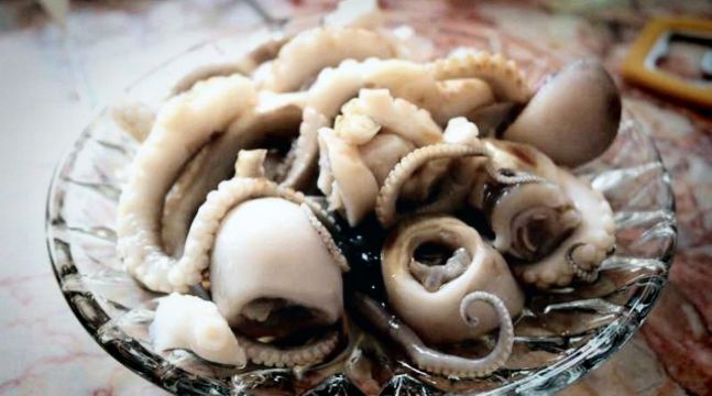 白灼章鱼,小菜,凉拌海蜇皮,大粒土笋冻,土笋汤,老二市口土笋冻,萝卜,凉拌海带,黑椒牛排两片装,秘制血邯