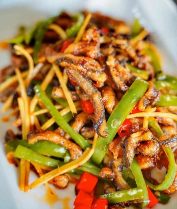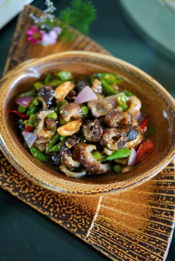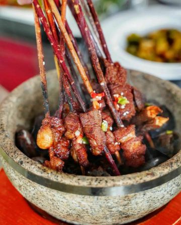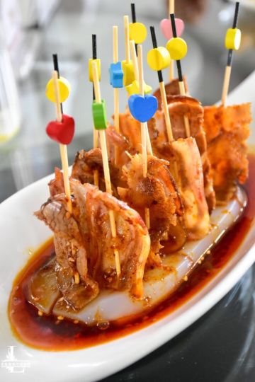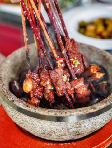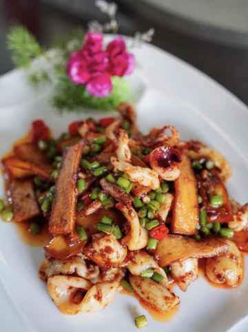 轻轻的一个蚊烤榴莲 用来当餐前水果也是够特别!选用金枕榴莲慢慢烤制而成,烧烤过的榴莲和你生吃榴莲不一样,即便是不喜欢的人也可能会爱上哦~对于我来说只要是榴莲都是我的爱,交给我我会把它全部消灭掉哦! 鳗鱼煲仔饭 煲仔饭一直都是我最爱的主食之一,粒粒分明的五常大米,肥美厚实的鳗鱼,可口的火腿粒和菜心碎汇聚一锅加入秘制酱汁,热气腾腾的吃起来真是超级满足。 一顿乱炒 名字虽叫乱炒但口味可不含糊,三层肉、猪肝和肥肠加泡椒爆炒,味道很家常口味很地道。 仔姜烧椒炒脆鳝 柔嫩又富有油脂的鳝鱼处理的完全无刺,嫩口的仔姜给味蕾带来一丝辣感,和豆豉的咸鲜交织在一起吃到停不下来。 石锅南瓜焖鲜鲍 Q弹爽口的鲍鱼仔和绵密香甜的日本金瓜,咸香交织滑爽入味,超级下饭。 酱爆小管鱿鱼 小管(鱿鱼)是闽南人很喜欢吃的一种海鲜,肉质脆弹鲜甜嫩口,搭配鸡腿菇和蒜薹一同炒制,入口香脆可口酱香气十足。 串烧安格斯牛肉 红柳枝上串着肥美的安格斯牛肉,烤的外焦里嫩的,配肉质细嫩肥厚鲜香的鸡枞菌不仅口感脆嫩也很有营养。 仔姜小管烧菜蟹 除了川菜还有海鲜类,脆爽的小管配细嫩的菜蟹,粉丝入味Q弹,爱海鲜的不要错过。 蒜泥白肉 店内长盛不衰的经典菜,多年来无论猪肉怎么涨这道菜都没涨过哦,肥美多汁的五花肉,蘸着蒜泥酱汁送入口,蒜香浓郁,咸辣鲜香,底下铺着一层青瓜清爽解腻。