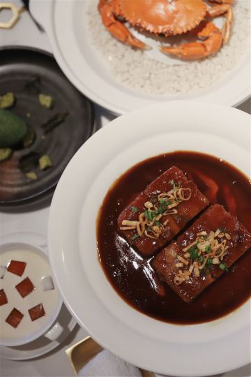 YANYU FUJIAN▪️哈喽大家好,我是怪力。 ▪️在很多人的心中,宴遇都是创意菜的领头者,是它将分子料理呈上餐桌,演绎另一番美食的诱惑。 . ▪️今年恰是宴遇品牌成立十年,摇身一变打造全新的高端闽菜,将米其林水准的精致闽菜呈现给厦门的食客,从此不用去北上广,即可尝到米其林水准的大餐。 . ▪️宴遇·福建菜装修特别有氛围感,既融入了闽南特色,也十分注重细节,无处不展现出高端与大气。包厢宽敞,布置精巧,无论是宴请还是约会都很适合。 . ▪️关于菜品,更是发挥宴遇一如既往的创意与美味,米其林水准的出品,每一道都让人赞叹。 . ▪️【佛跳墙】是店里的镇店之宝,也是闽菜精华,一盅涵盖鲍鱼、海参、蹄筋等各种绝佳食材,汤汁绝妙,浓郁鲜香。 . ▪️【盐焗重壳蟹】据说重壳蟹非常罕见,一千只里也挑不出一只。软壳香脆,蟹膏饱满,蟹肉紧实鲜美。 . ▪️【原创葱头油肉汁焗荔浦芋头】严选优质荔浦芋头,采用葱头油肉汁焗的做法,芋头软糯入味,每一口都珍贵。 . ▪️【香煎台海午鱼】新鲜的午鱼切成段之后采用香煎的做法,鱼皮焦香,油脂丰富,鲜香诱人。 . ▪️【意大利黑醋炸黑毛猪肉】致敬闽南小吃炸醋肉,黑毛猪肉每一块都很精瘦紧实,搭配黑醋油炸香酥好吃。 . ▪️【大红袍鲜奶布丁】口感惊艳,奶香浓郁,还有大红袍的香气萦绕其中,即便吃过还久久回味。 . ▪️【玉女瓜拌百合】 ▪️【台湾山苏】 ▪️【招牌闽南卤面】 ▪️【夏蛋】