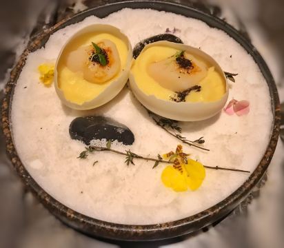 一直在路上的猫厦门创意餐厅宴遇,跟美食来一场艳遇。 厦门最早的网红餐厅,各款创意菜好看又好吃,特别适合约会。厦门连锁的有好几家,今天来的是新景店。 地址:新景中心A栋2楼,地铁站直达,有停车场就餐可免费停车两小时。 环境有特色,冷色调装修暖色调灯光,极具仪式感,浪漫适合约会。 很多菜都数创意菜,不看菜名甚至猜不出是什么食材。 #黑松露薯泥奥带# 造型精美味道非常特别,绵软的薯泥缀以黑松露,还有些许芝士,绵软香甜。 #新疆红柳枝安格斯小牛肉串# 牛肉瘦中带点肥,香嫩多汁,还配有好吃的菇。 #鸽子蛋#招牌菜,按每个人一份来上菜,一份半只乳鸽,还有“鸽子蛋”,乳鸽真的好吃,外皮酥脆,撕开鸽子腿的一刻,肉汁滴下来,肉质细腻又嫩。“鸽子蛋”不是真正的鸽子蛋,外皮白巧克力,内里是芒果酱,看似鸽子蛋,其实是完美的甜品。 服务:唯一不太满意的,不主动要是不给倒茶水的。说是餐前饮料但是吃一半才给,服务员也感觉不是很热情,可能快过年了,大家都有一颗想要归家的心吧。