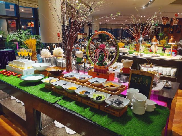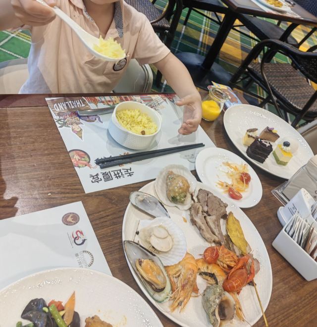 自助晚餐,三文鱼刺身,煎牛小排,煎羊排,自助午餐,榴莲冰淇淋,芝士扇贝,核桃派,法式甜点,自助早餐