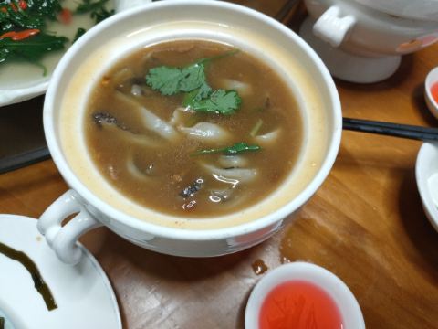 花花花小萌【同安饭店|东渡店】 真的是厦门地道的老店了,2003年开业至今生意一直很火,一定要提前预定才行。室内没有大厅都是包间。室外别致的小院子冬天晚上会凉,天气好的时候是很舒服。 菜品很出色,挺让人惊喜 【鲈鳗煲】这里的招牌,一盘上来看起来份量很足,颜色诱人,夹一大块咬下去,口感结实,味道好。 【芋泥】每人一份,一个人吃刚刚好,不会腻。外面浇的是桂花蜜,能看到淡黄的桂花,芋泥中间还吃到了咸蛋黄,蛮好吃的。 【干捞鲨鱼皮】也是这里的招牌菜,有慢火保温,里面很粘稠,鲨鱼皮切成条状,滑滑的,吃下去真的觉得满满的胶原蛋白。 【上汤枸杞叶】一般的店没有枸杞叶,很有营养,我还是很喜欢吃的 特别说一下这里的经理人特别好,很温柔,处理事情又井井有条。