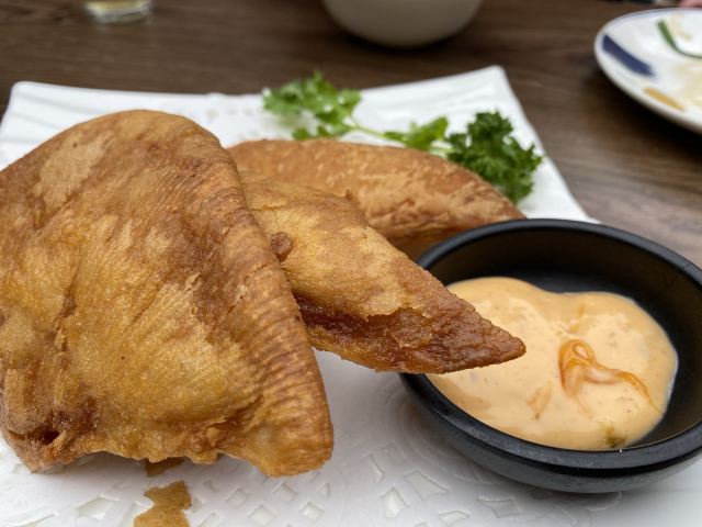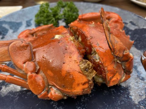 安格风同安饭店,每次带长辈吃饭都会想到他们家,价格实惠,菜品不踩雷,口味够闽南,长辈都接受并且喜欢。 手工褒美芋泥,强烈推荐,每次去必点,芋泥绵软香甜,咸蛋黄锦上添花。舀上面桂花蜜多了会有点甜,建议一勺到底,甜度适中。 手撕老板翅,第一次吃这种海鲜,蛮新奇的,真的是可以手撕,连骨头带肉一块吃,很香。骨头都是软骨,完全可以一块吃进去。毕竟是炸物,吃多了会有点油腻,沙拉酱搭配的很妙。 同安煎蟹,有膏哦,而且膏很香,蟹肉饱满,很贴心的给了工具,蟹钳整个剥开,看着就好满足。 上汤枸杞叶,吃完炸物和煎蟹,来碗上汤枸杞叶清淡爽口,很完美的一个ending…… 作为老牌餐厅,服务必定点赞,太多老牌餐厅服务跟不上,同安饭店的服务很及时,是阿姨级别,很亲切,很热情。 人均110左右,位于东渡六中附近,适合朋友、家庭聚餐。