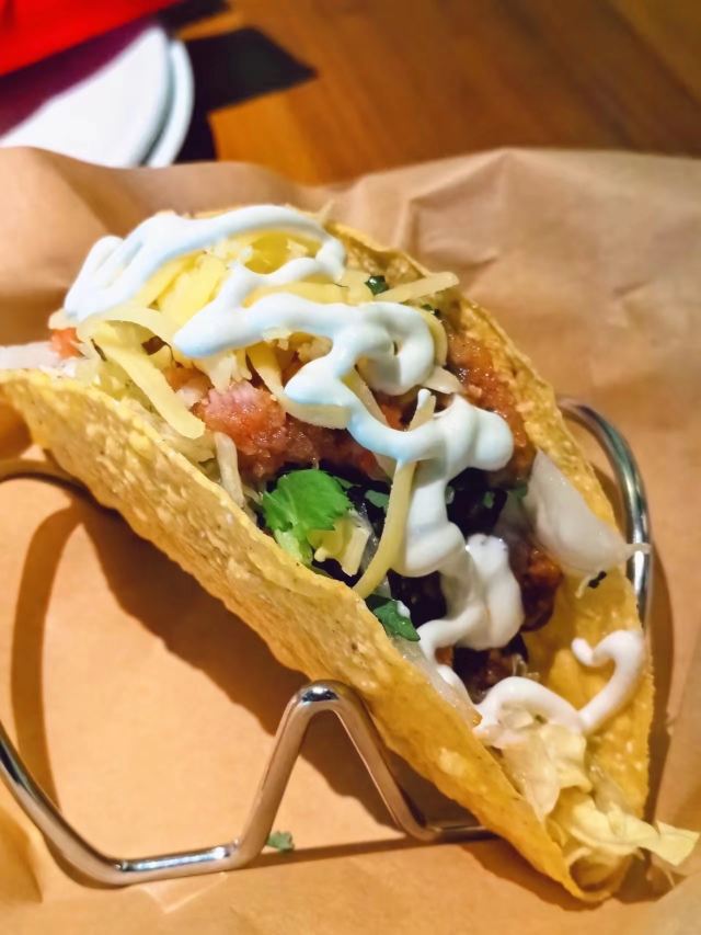 想吃正宗道地的墨西哥菜就来这家,卷饼、Taco都是喜欢的主食,大部分菜品都有牛肉鸡肉猪肉可选,可以随性变换很多花样。 这盘Taco满分,玉米片基底够脆、配菜也丰富,店里还有鸡尾酒,到了晚上可以约上姐妹,点一杯菠萝玛格丽特。