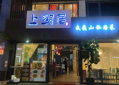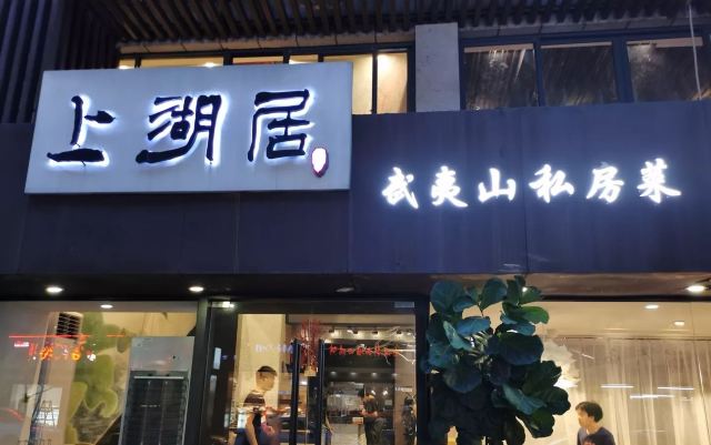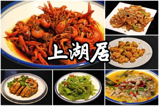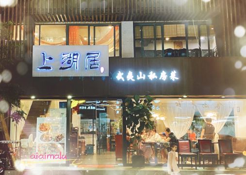 aiaimalu今晚吃点啥?全靠轩公子翻牌,想吃小龙虾的心蠢蠢欲动了起来,那就离家不远的上湖居吧。上湖居主打武夷山私房菜,忽然想起那年特意去五夫镇看莲好似昨日。🤓 🍀环境: 两层沿街店面,一层小桌二层包间大桌,装修简约朴素。 🍽菜品: 蒜香小龙虾🦞,照顾轩公子吃不了辣,点了蒜香口味。🧄蒜蓉真是一种有趣的佐料,生一点口感辛辣脆爽,混合在龙虾中煮熟一点口感变得绵密汤头清甜却也保持了蒜香。小龙虾洗得很仔细干净,虾肉紧实弹牙!剥壳后留下虾球,夹些许泡面,虾汁混合着蒜蓉淋在泡面上,完美配搭!👍 木桶滑牛肉🐂,这道菜真心强烈推荐,可下饭可配酒。牛肉烹饪时加入香叶和胡椒粉,肉质鲜嫩爽滑,藏在牛肉下的鸭血豆腐滚烫入味,食用时定要小心哦!😲 光饼大肠🥠,不要惊讶,这个组合绝对是闽北菜最具代表性的菜肴之一!光饼油炸至金黄,大肠切成条状,加入姜大蒜辣椒旺火翻炒。光饼香酥可口大肠油而不腻,黄白相间好似金片玉块。 💁🏻♂️服务: 店里清一色的小哥服务员,热心有礼,为食客准备了一次性围裙和手套,比心!♥️