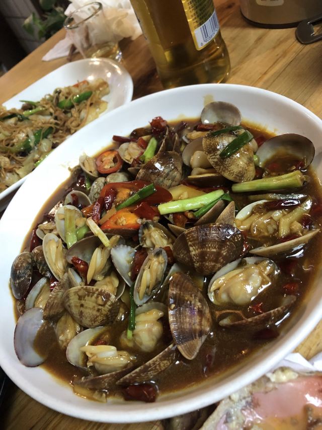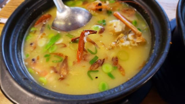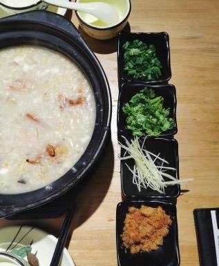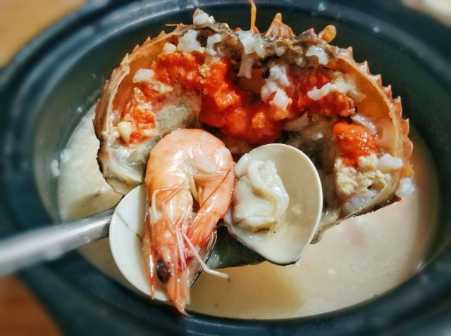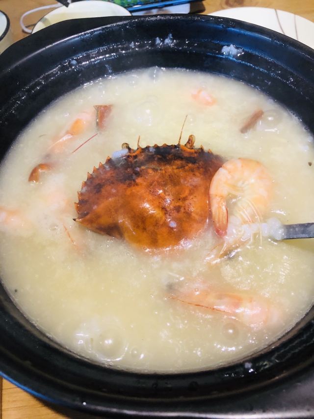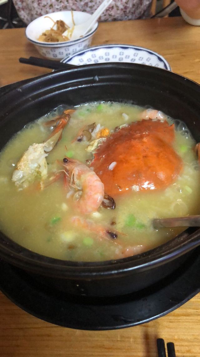 young-liu【环境】 位置在中山路步行街旁边的一个小岔路里,不是特别好找,但是酒香不怕巷子深,我前一天晚上预约都没约上,据说人非常多。 装修其实还是很不错的,但总觉得桌椅什么的陈列有点散乱,但是并不影响用餐的心情。 【服务】 点餐是在1楼,菜单都在门口的大鱼缸上面,点完了再去找座。我觉得1楼的座位对着鱼缸虽然很有趣,但是人多了可能会有点闹,就选了2楼。 服务员小哥哥会帮忙烫餐具,用餐过程中还会询问意见和建议,我觉得还挺不错的。 【口味&食材】 「膏蟹鲜虾海鲜粥」真的是名不虚传,量非常足,膏蟹真的好多膏啊,甚至有种吃不完的感觉,海鲜也非常丰富,这一锅,我们两个人吃不了,想说至少把海鲜都吃掉,竟然也废了好大力气,撑死了~ 「金牌海蛎煎」好多朋友跟我说海蛎煎不好吃,让我不要尝试,但是我觉得他家的很好吃啊,海蛎很鲜,蛋饼也很香,就是吃到最后会腻,油有点太多了~ 「芥菜虾米」为什么青菜总辣么受欢迎嘞,而且我发现厦门真的喜欢用海鲜炒青菜,特别鲜美,怕腻的话一定要来一盘! 【总结】 膏蟹粥真的好喝,下次来厦门的话还会来喝