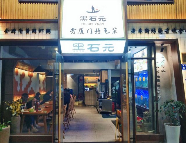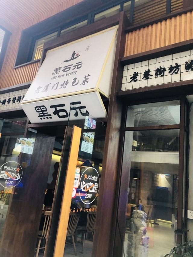 franceteam他家在个人心中还是很有分量的,虽说个人一般点评给分不会低,但大多怀有一份对商家不易的同理心。而靠真实实力尤其是味道方面,让我打高分的商家其实并不多,他家算一家。有段时间经过的时候,发现大门紧闭,心中暗自叹息,这么好的店,不会就这么没了吧?好在,一切都只是我多想了。N刷中山路第一海鲜粥——黑石元·老厦门特色菜! [薄荷]环境: 店址位于南田巷43号,中华电影院后面的小巷子,厦门吃货圈里出了名的老店了,位置虽然不显眼,但只要自认是个吃货的,基本没有不知道地方的。之前,不知道什么原因,闭店了一段时间。再次,光顾,发现里面的环境没有变动,还是原来的样子,略微紧凑的空间,明亮的落地窗,干净的地砖,桌子木作线条利落,搭配暖色系灯效,整体风格简约整洁,含蓄大方。 |膏蟹鲜虾海鲜粥^店内招牌菜,几乎每桌必点。膏蟹和鲜虾都很新鲜,膏蟹更是蟹黄满满,货真价实决不忽悠,看图片就知道有多实在了。粥底浓稠,另外配有葱头,肉松,姜丝,芹菜,跟之前相比少了炸米,口感感觉还是之前有炸米的更好,小小遗憾,不过整体表现依旧出色,中山路一带应该找不到更好的了,所以还是继续推荐。 |野生小海鱼酱油水^在杂鱼的范畴内,他家的鱼个头算大的,酱油水做法挺到位的,新鲜甘甜。连平时嫌弃杂鱼刺多麻烦的自己也吃了两条,挺不错的。 |九层塔炒花蛤^花蛤肥美入味,酱汁也蛮下饭的。 |豆干炒芹菜^豆干很Q,炒的火候刚刚好,芹菜也挺嫩的。 总评,黑石元·老厦门特色菜现在已经是知名度很高的一家餐厅了。身边的小伙伴们,基本上都去吃过,口碑都非常好。服务好,菜品好,在中山路一带算是性价很高的。一如既往的推荐!
