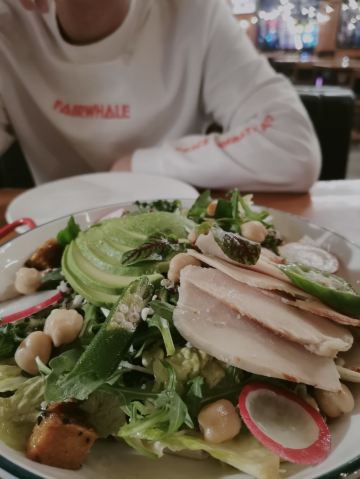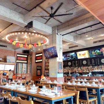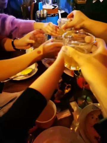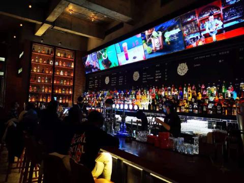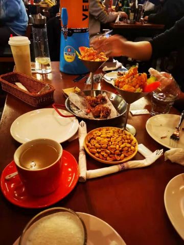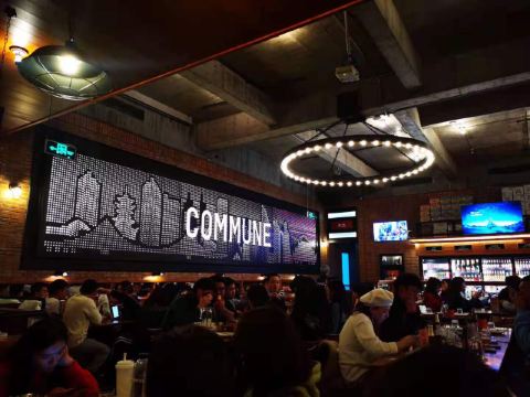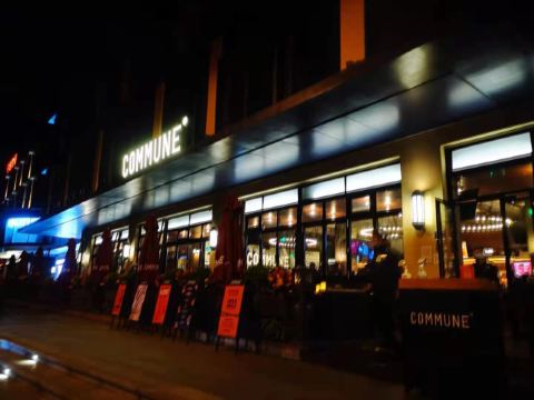 commune位于古地石广场,感觉这种形式的酒吧很有新意,宽敞的酒吧可以容纳上百人,一进去就觉得好high好high,温暖热闹的氛围和外面寒冷的天气形成鲜明对比,通风效果,虽然人很多,没有什么异味,很舒服。 推荐烤鸡和披萨,一群人边玩狼人杀、摇骰子、谁是卧底,一边喝酒真的很适合放松哈,如果不玩游戏,互相吹牛也很好玩。