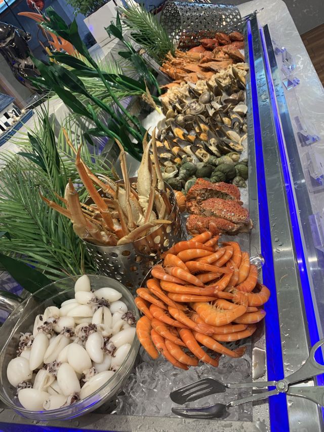 自助餐,海鲜,鲜虾,焦糖布丁,三文鱼,牛排,自助冰淇淋,鲜活海鲜,芝士蛋糕,明虾,烤生蚝蒸扇贝,烤鱿鱼,巧克力喷泉,芝士焗生蚝