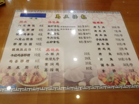 山珍素包,牛肉汤包,三鲜汤包,八宝稀饭,羊肉汤包,八宝山楂汤,八宝醪糟,麻酱凉皮,鲜虾汤包,羊肉串,小酥肉