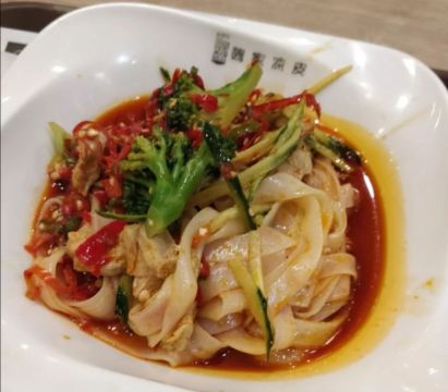西安的本土品牌,秘制凉皮,非常的喜欢,秘制的料汁,很浓的香辣味,里面的鸡肉和西兰花特别的好吃,凉皮蘸着酱汁吃很香。优质肉夹馍,外酥里嫩,非常的好吃。