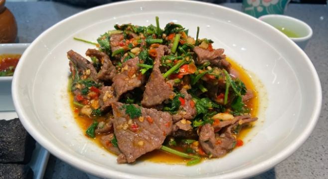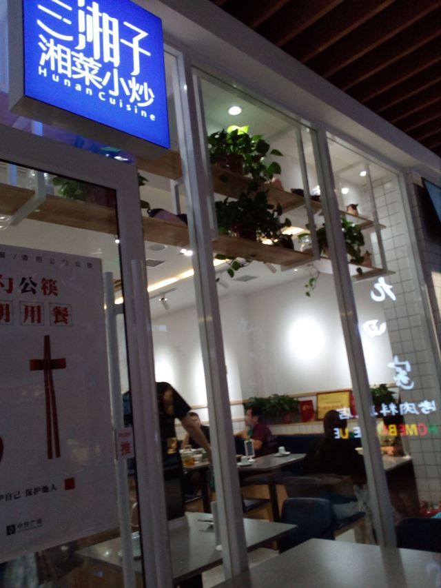 位置中贸广场餐饮楼二楼,店面十分干净整洁,蓝色招牌很醒目。服务大方热情。青椒小炒肉,店里的招牌菜,的确味道不错,辣的很带劲,非常好吃。