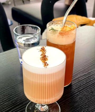 住宿的同时还能品尝美食,喝点小酒,这也太幸福了吧 当时看套餐的照片感觉还不错,抱着试试的态度购买了 没想到实物比照片更好看,还能亲眼看着调酒师调酒,酒吧的整体氛围都很不错,特别适合出片。和小姐姐拍了很多照,我就不一一展示出来啦。另外酒店的设计风格我很喜欢,前台的小哥哥小姐姐们特别温柔呢