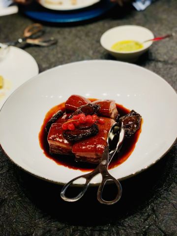 长安小新心一年有四季,二十四节气,七十二物候,中餐讲究不时不食,日餐讲究顺时而为,因旬而变,其实说的都是追求季节选用应季的食材烹饪美味。 大董之前在做四季品鉴会,现在已经在做二十四节气品鉴会了,虽然都没有经历过,但从朋友圈看到,食材的选择与色彩的搭配以及餐桌布置及灯光都是与季节协调搭配的。 中国餐饮行业里面色彩搭配做的最好的肯定属大董了,北京南新仓店楼上的大董美食学院还教授烹饪色彩学这门课,西安这家店的装修风格也运用了色彩学,17个包间的包间名称用的就是中国传统色的色彩名称,灯光和装潢也是。 来说说菜品,卤水乳鸽,应该是潮卤,最近潮卤比较火。口味好吃,肉质鲜美,个人感觉比烧乳鸽好吃。 芥末鸭掌好吃,吃了好多个,不太辣,也不会呛,还有点甜甜的感觉。 葵香鸡,这个据说店里面只有10份,一天只有5只鸡,一开二,现在疫情,人不太多,所以能买到,平时直接就被预定完了。这个鸡应该是我吃过第二嫩的鸡。 红烧肉,这个是我的最爱,搭配着鲍鱼,鲍鱼是鲜鲍鱼,但是有干鲍鱼的口感。 烤鸭是22天的酥不腻小雏鸭,鸭皮搭配着鱼子酱,直接入口,鸭皮的酥搭配着鱼子酱的鲜咸,好吃。 最后一道是甜品,沙琪玛,好好看,和古观音禅寺的银杏树很搭。 整体5颗星,价钱也是五颗星。