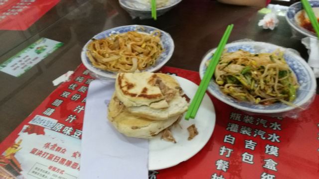 贝加尔湖畔的伊万啊之前看【舌尖上的中国】的时候就已经馋到不行,只因人在国外,所以只能看一看。 本来要去总店的,但是下午四点多就已经卖完关门了,来了这家最近的店。 装修很简单,朴实无华的木桌木椅,三三两两的几个服务员忙活着,可能这就是属于市井的烟火味道吧。 跟朋友点了肉夹馍和米皮。 肉夹馍 发面馍,区别于潼关肉夹馍用的是油酥馍。 米皮筋道有韧性,搭配豆芽口感不错。 虽然比外地已经好吃很多倍了,但是并没有让我很惊艳。 应该搭配冰峰的,可惜我已经戒掉碳酸饮料很多年了。 服务就是街头小店的一贯风格。 价格倒是很实惠,人均:15¥左右 TIPS: 1. 这家不是总店哦。