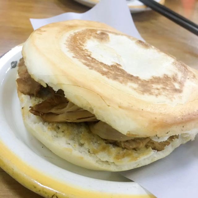 秦豫肉夹馍,这家店每天卖到下午一点关门,上过央视很多频道以及舌尖上的中国,可以说是爆火的西安一线明星,从品质上来说如果没有我下一家的对比这里算是非常不错的了,肉夹馍在于肉的卤香肥油浸泡馍达到滋润的口感和香浓的味觉。