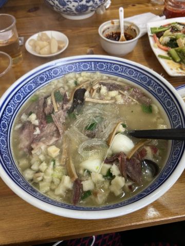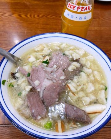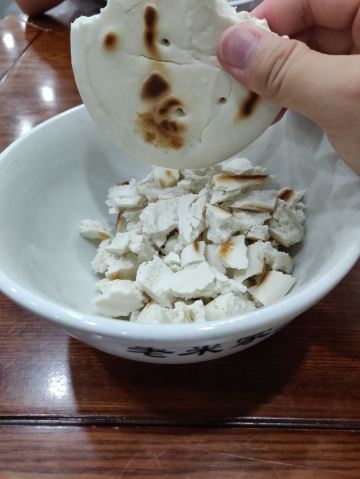 Laomijiadayupaomo (huiminjiezongdian)跟其他很多家小切片的牛肉不同,这家牛肉厚厚的大大片一片,数量虽然不多,但赢在扎实。 名气什么的就不赘述了,本地人外地人都知道。 饭点的时候人特别多,需要排队。凉菜味道不错,一瓶冰峰一份凉菜一碗泡馍,吃完暖和一下午。