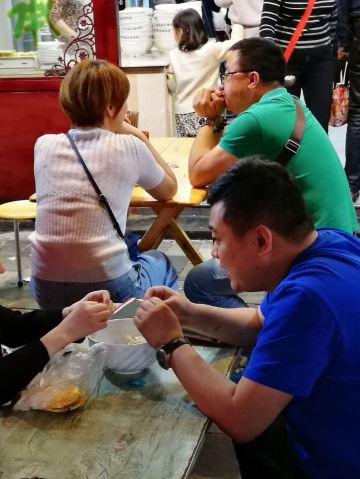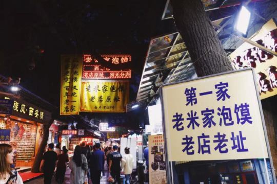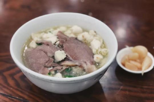 回民街西羊市上一家店面不大的泡馍店,在本地人中也有很高的口碑,经常爆满。泡馍的汤很鲜美,里面的羊肉很酥烂,加上自家的糖蒜和辣萝卜,口感相当不错。